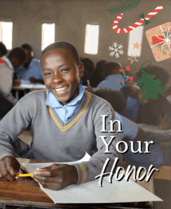 Through a generous gift given in your honor, a child will receive a school uniform and shoes, giving them hope and a step toward their future.