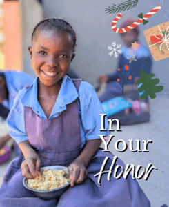 This gift given in your honor, extends love to 80 hungry children through a warm, nutritious meal that they depend on.
